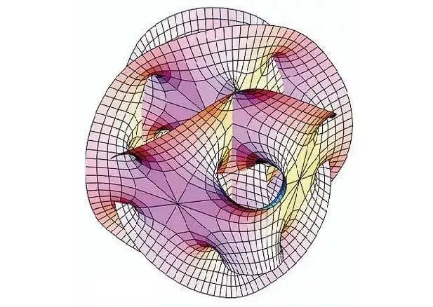 真实世界的情况是(至少按弦理论学家所说的是),除我们可以感知的3个“延展维”外,还有6个“蜷缩维”,它们的尺寸在普朗克长度的数量级,因此我们无法感知到。