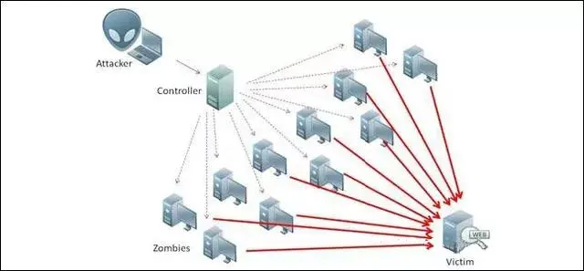 DDoS(分布式拒绝服务)攻击,指借助于客户/服务器技术,将多台计算机联合起来作为攻击平台,对一个或多个目标发动攻击。