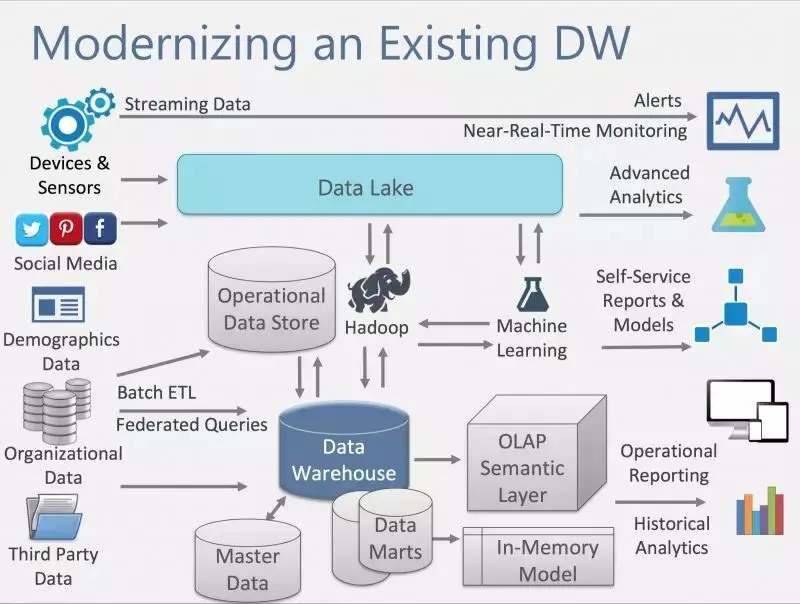 在图3 Melissa Coates的总结中我们可以得出,现代数仓之所以“现代”,是因为它有多平台架构、数据虚拟化、数据的近实时分析、敏捷交付方式等等一系列特性。
