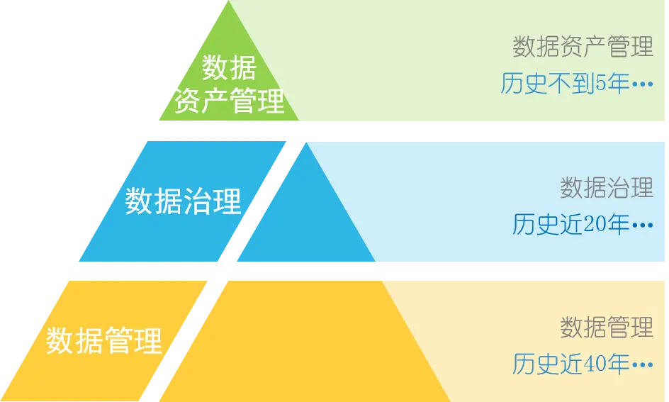 数据管理的概念从80年代提出到现在已经接近40年了,数据治理的提法也有近20年,而数据资产管理的提出基本是最近5年的事情,中国数据资产管理峰会对数据资产管理定义为是对数据管理、数据治理及数据资产化的管理过程。