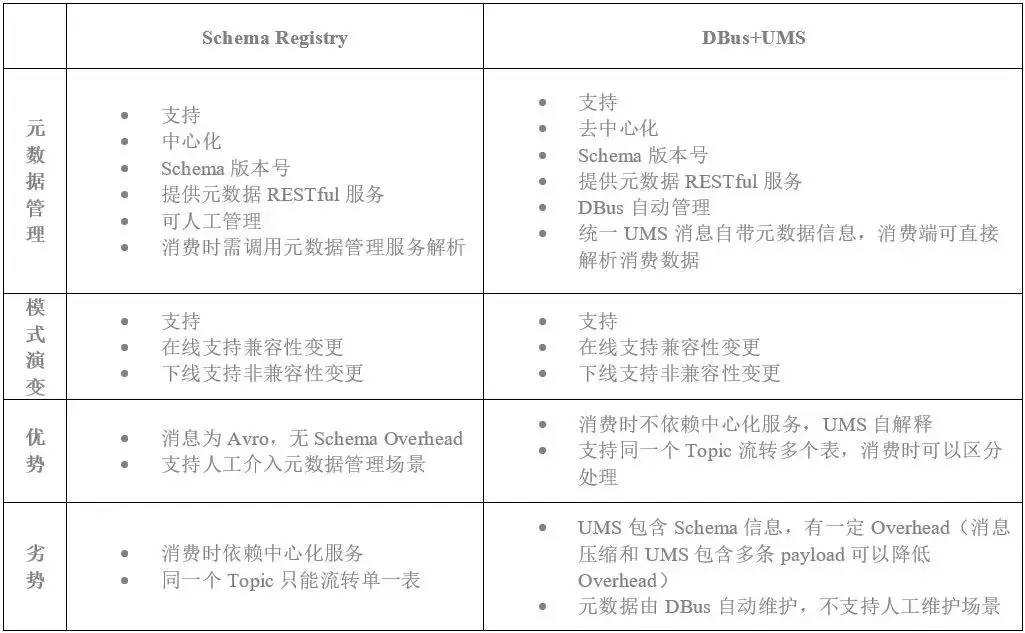表1 Schema Registry与DBus+UMS对比