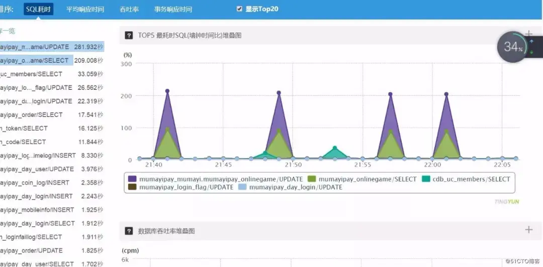 对Oracle的一些配置进行了检查,性能未能得到任何改善。于是就跟开发人员进行沟通,问他们近期是否做了项目更新?答复是肯定的,但无法确定是哪里的问题引起了性能上的问题,所以我建议在应用服务器上安装某性能监控探针。获得许可,很快就部署完毕,这样又等待了10来分钟,数据就出来了。