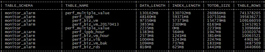 select TABLE_ROWS from information_schema.tables where TABLE_SCHEMA ="monitor_alarm" and TABLE_NAME="perf_biz_vm";