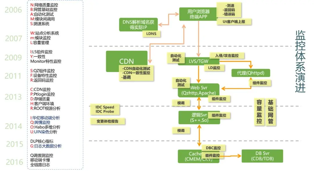 从2006年我入职腾讯开始,我们的运维和研发开始DO分离,运维开始主导去做各种监控系统,陆陆续续十多年来,建立了20多个监控系统,非常可怕。很少有企业做这么多,多数企业一套监控系统做好就可以了。而我们这么多监控系统,并非重复建设,到目前看每套系统也都有存在价值的。