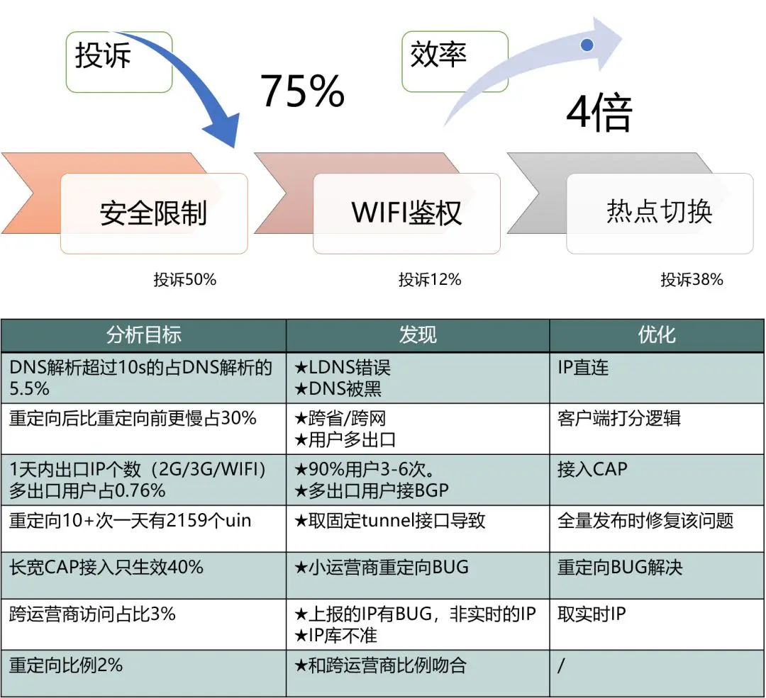 以上表格里是七个优化点,实际上不止,我记得这个项目到后面运维大概有四十多个优化点。一个手机端的产品,发现了四十多个待优化的点,这些数据原来是分散在各处的,利用多维监控之后,可以更加方便的把各种异常分析出来。