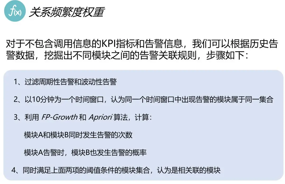 2012年左右,运维根据经验所设计的“权重与面积算法”,原理就是在同样长度的链路上通过叠加上去的告警的排列不同,可以把它优先的权重算出来。