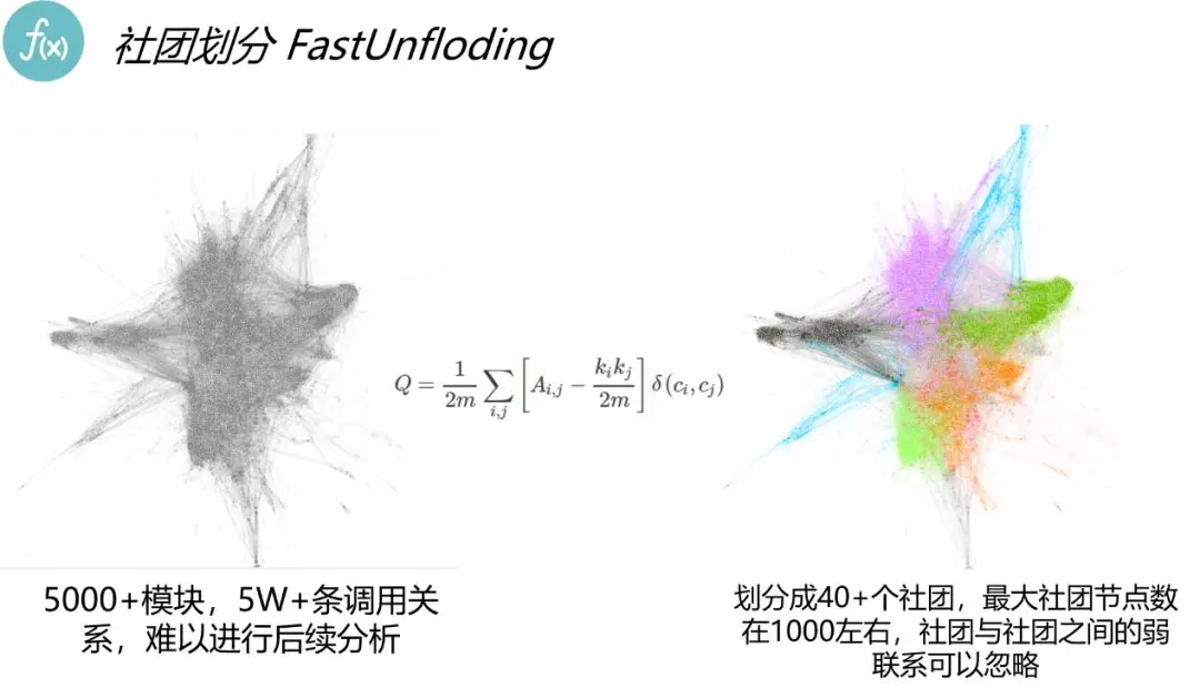 第二个,关系划分。前面有提到我们服务有很强的业务逻辑在里面,但实际的关系不是这样的,我们尝试用社交领域的市场,通过实际的访问关系来划分。这里可以看到,左边的图是所有的访问关系,右边的图是经过划分之后形成的访问关系。以前我们系统是直接割断,而现在,我们的系统因为实际上有很强的关系,就像我们的QQ关系链一样,会有各种的交互,哪怕可能不属于同一类人,但是之间的关系是非常强的,解决了链路被切断的问题。