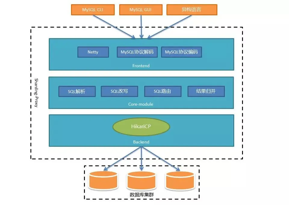 Sharding-Proxy定位为透明化的数据库代理端,提供封装了数据库二进制协议的服务端版本,用于完成对异构语言的支持。目前先提供MySQL版本,它可以使用任何兼容MySQL协议的访问客户端操作数据(如:MySQLCommandClient、MySQLWorkbench等),对DBA更加友好。