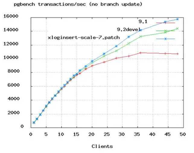 TPS的增长速度从50个连接的时候开始变慢。根据这个结果,PostgreSQL给出了如下公式: