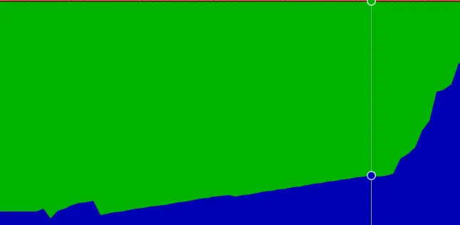 如果Client由于某种原因消费变慢了,或者干脆不消费了,会发生什么呢?通过测试发现,内存使用量直线拉升,比图1更强劲,最后将内存耗尽,Proxy被KO。