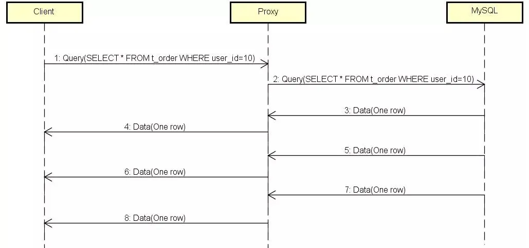 完成以上优化后,Client-Proxy和Proxy-MySQL两侧的消息交互都变成了最后这张图的流程,从第9步开始高效查询。