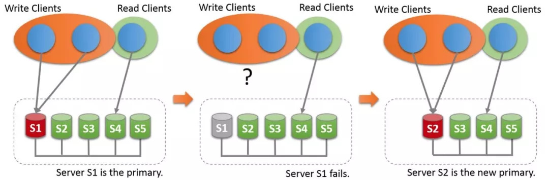 MGR包括多主与单主两个模式,出于多主模式的一些已知问题以及实际业务场景的考虑,我们决定选择单主模式作为主要方案,即当主节点故障后,集群自动选举新的主节点,应用将写访问指向新的主节点。