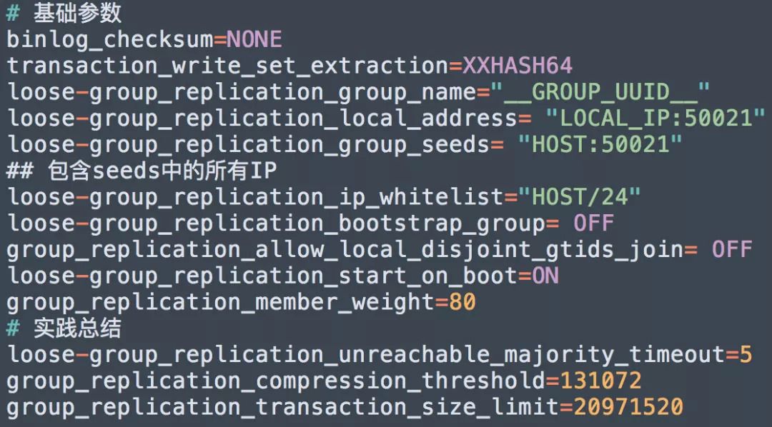 需要说明的是MGR的大事务有自己的“定义”,它的大事务与网络的传输时间有关,这就解释了为什么我们开启压缩后,节点异常状态次数减少的问题。最后我们通过限制事务的大小的方式,彻底解决了这个问题,同时也在业务逻辑上优化了大事务。以下是两个相关的参数:
