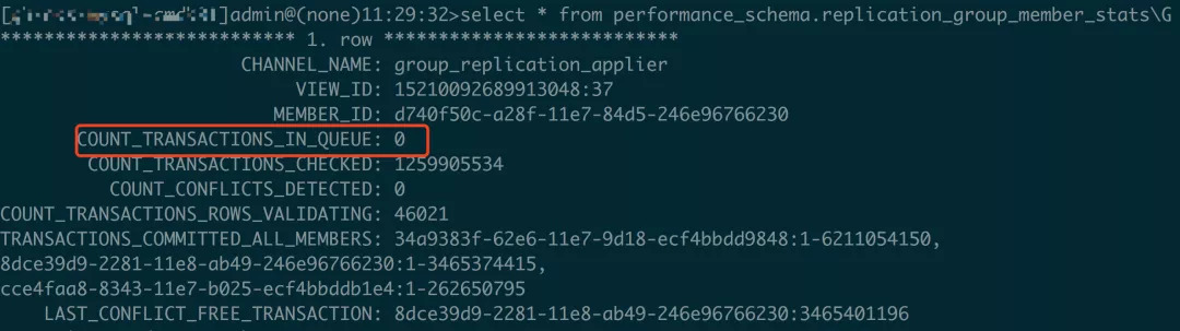 同时还有主节点与其他节点的GTID_SET差值也可以作为一定参考。