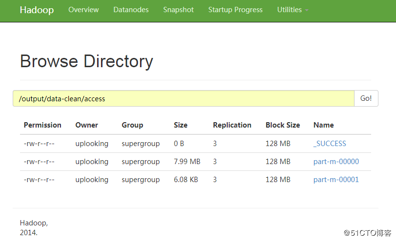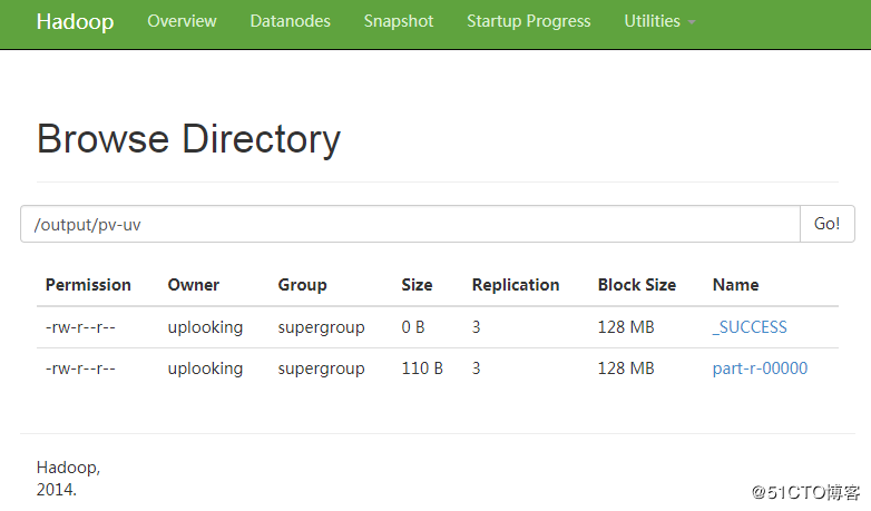 上面的MapReduce程序执行成功后,可以看到在HDFS中生成的数据输出目录: