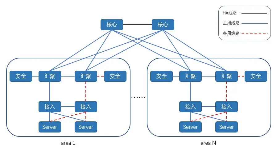 稳定的网络:区域的明确划分,网络设备的稳定架构,使网络更具有稳定性。