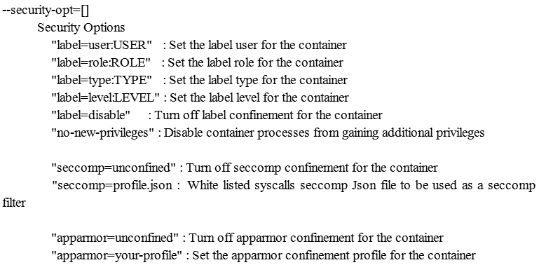 - -secutity-opt ="apparmor:PROFILE"(设置AppArmor配置文件)