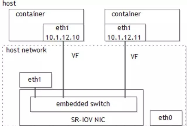 当然Bridge的性能一般,如果性能要求比较高,可使用SR-IOV网卡嵌入容器内。