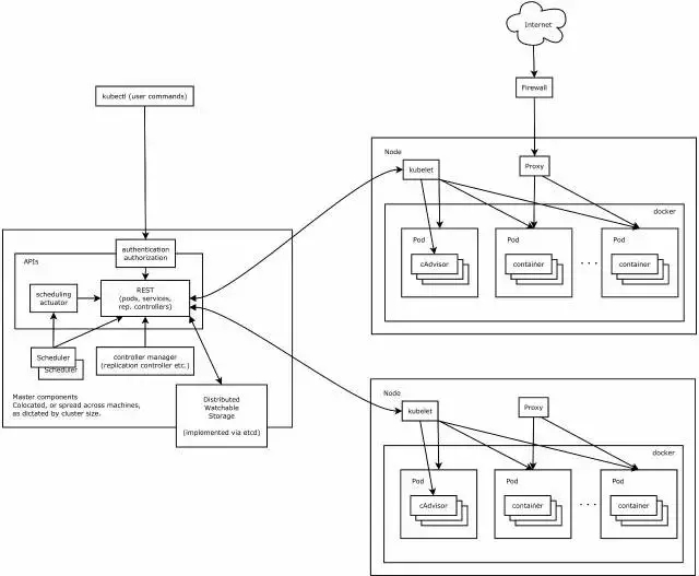 很多人都将容器和微服务联系起来,从Kubernetes的设计可以看出,Kubernetes的模块设计时非常的微服务化,每个进程都仅仅干自己的事情,而通过apiserver的松耦合关联起来。