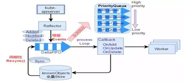 但基于事件模型的一个缺点是,总是通过delta进行事件触发,过了一段时间,就不知道是否同步了,因而需要周期性地Resync一下,保证全量的同步之后,然后再进行增量的事件处理。