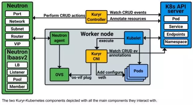 OpenStack里面有一个项目Kuryr可以很好地去做这件事情,完全使用开源的OpenStack和Kubernetes可以尝试集成一下。