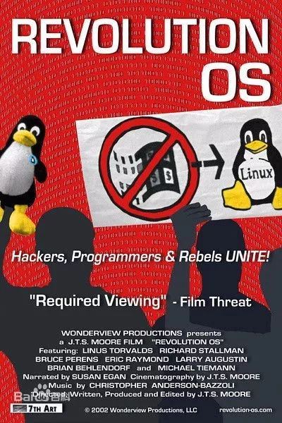 比如2001年这部名叫《操作系统革命》的纪录片,讲述的就是当时已经形成垄断地位的专属软件如Windows、商业版本的Unix是如何在开源版的Linux 等软件的压力下接连崩溃的一个采访。