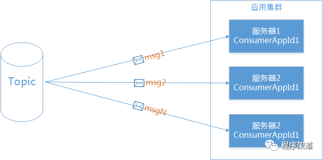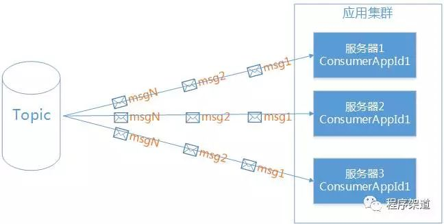 如果要规避这些弊端,那么我们可以利用集群消费来模拟广播,在集群消费中,我们的每台服务器上的消费APPID是相同的,如果要达到广播的效果,那么每台服务器上面的消费APPID保持不同就可以了。