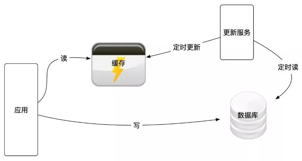 这是我们最常用的缓存服务架构模式。对于读操作,我们先读缓存,如果缓存不存在这份数据,则再读数据库,读取数据库后再回写缓存;对于写操作,我们先写数据库,再写缓存。