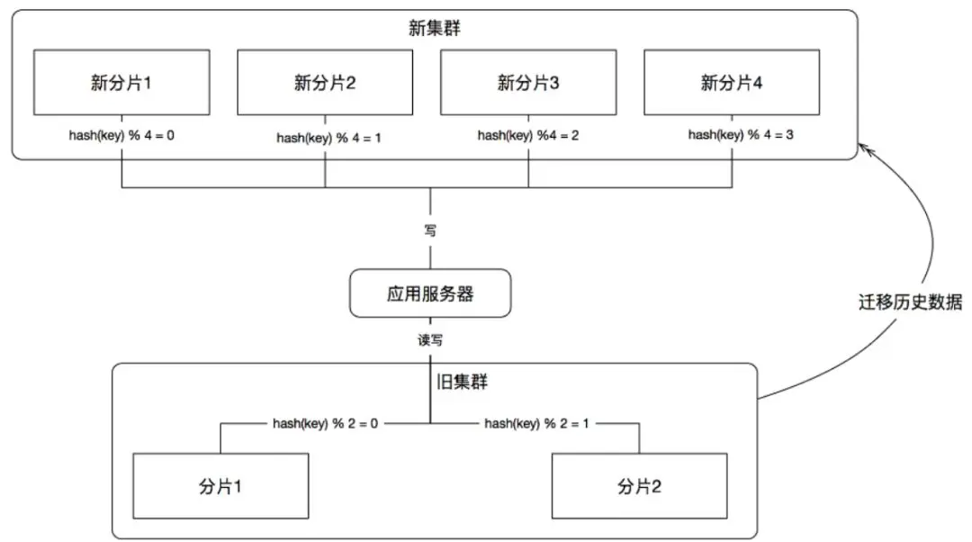 迁移历史数据,按照新的规则把历史数据迁移到新的缓存集群中