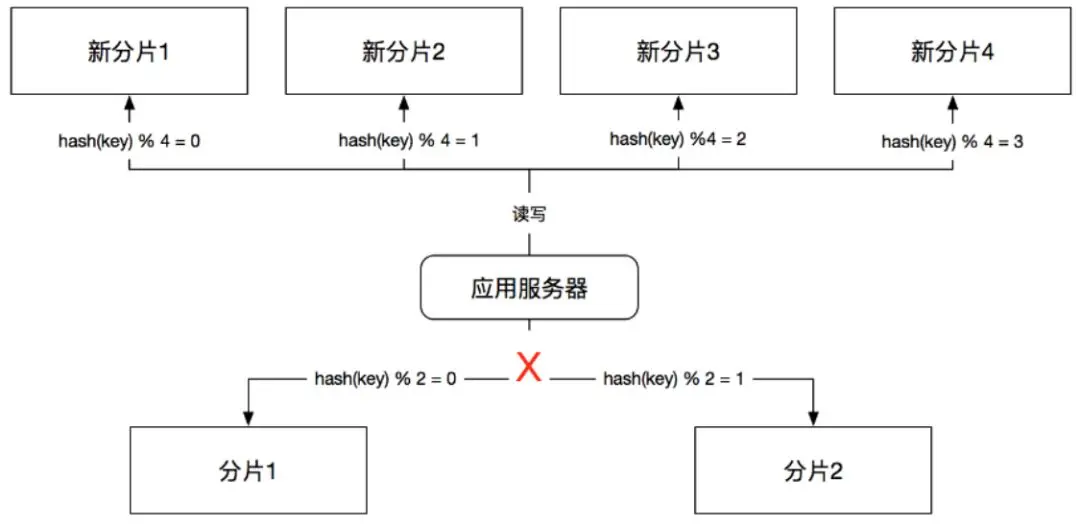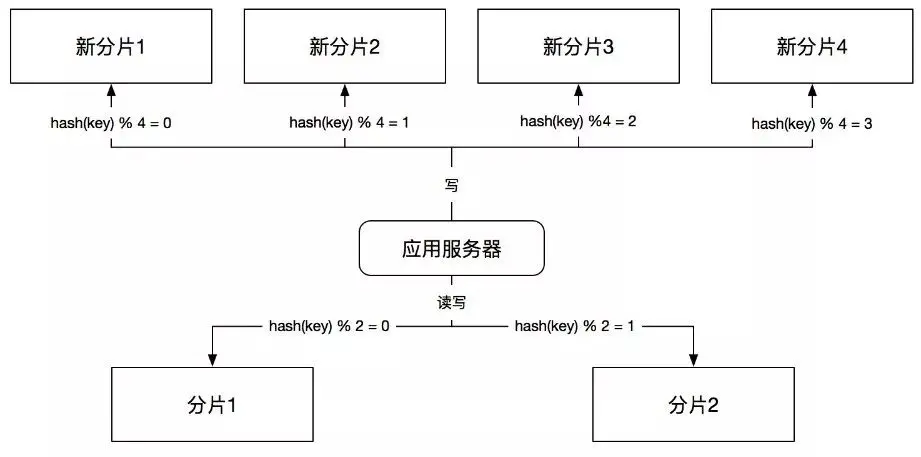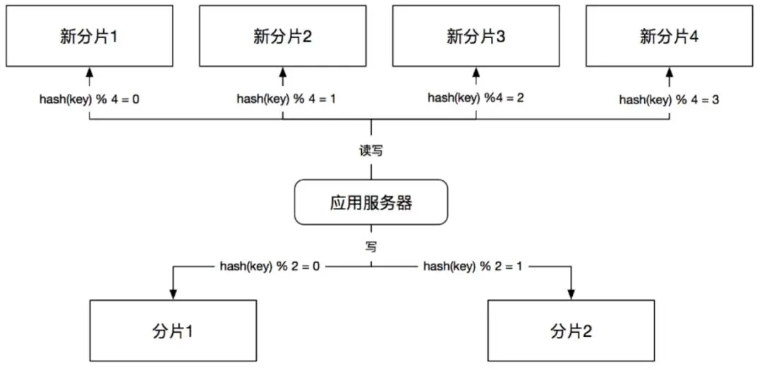 这一步通常是在双写和切读后验证没有任何问题,并保证数据一致性的情况下,才把这部分代码下线的。同时可以把旧的分片下线,如果是扩容的场景,并且重用了旧的分片1和分片2,则还可以清理分片1和分片2中的冗余数据。