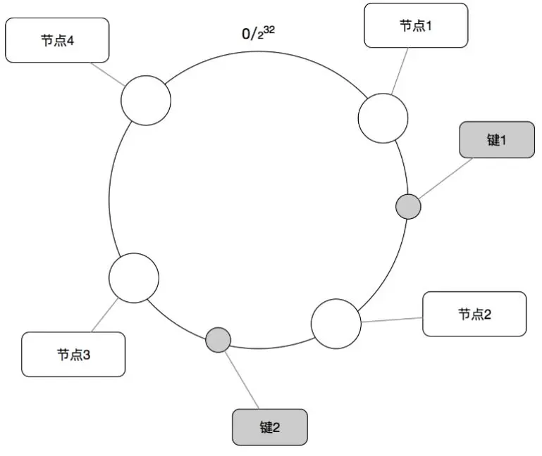 求出Redis服务器(节点)的哈希值,并将其配置到0-232的圆(Continuum)上