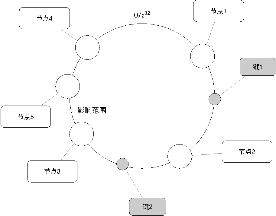我们看到,在节点3和节点4之间增加了节点5,影响范围是节点3到节点5之间的数据,而并不影响其他节点的数据。因此,这为缓存的扩容提供了便利性,当缓存压力增加且缓存容量不够时,我们通常可以通过在线增加节点的方式来完成扩容。