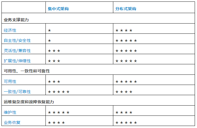 通过上述对集中式和分布式架构在业务支撑、一致性/可用性、运维成本/故障恢复三个方面的分析发现,分布式架构在经济性、安全自主、灵活性、可伸缩性等方面有明显优势,随着金融系统需要处理的交易量与数据量越来越大,分布式架构在这方面的优势也会越来越明显。