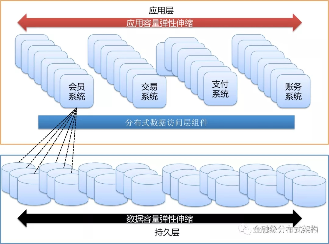 由于集中式架构本身扩展性的不足,所有业务都跑在一个单点上,一旦发生故障就可能影响到所有用户。在承载海量业务的系统上,这种影响更容易被放大,尤其在金融系统上,更有可能引发一些社会事件。
