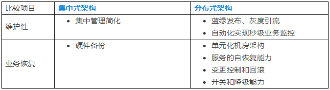 下表总结了两种架构模式在业务支撑的几个方面的比较: