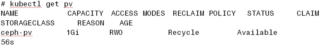 # kubectl create -f ceph-pv.yaml