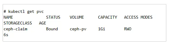 # kubectl create -f static-ceph-pvc.yaml
