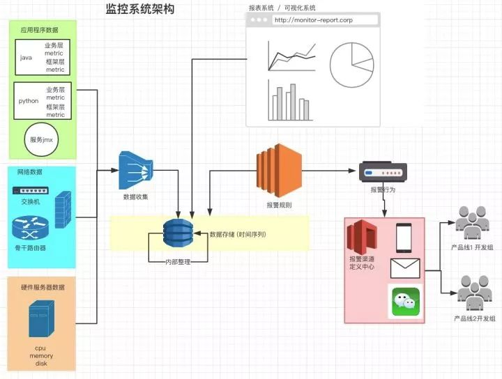 网上有很多讲述公司内部监控报警系统的文章,都提到了自家监控系统的实现,但都是直接讲解了实现的细节,没有讲骨架、背景,我感觉对于新入行的程序员来说会略显生硬,对于想了解监控报警系统内部运作原理的人来说,架构逻辑也不够清晰。