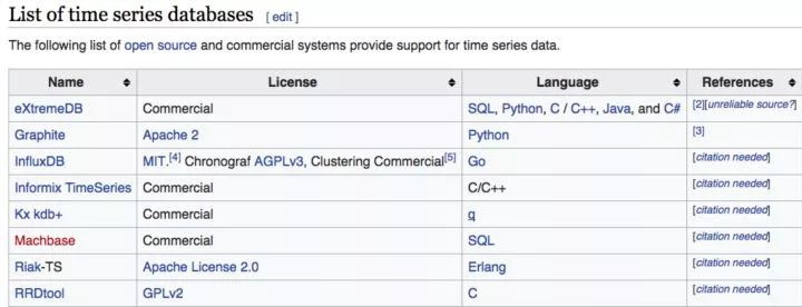 wiki : Time series database