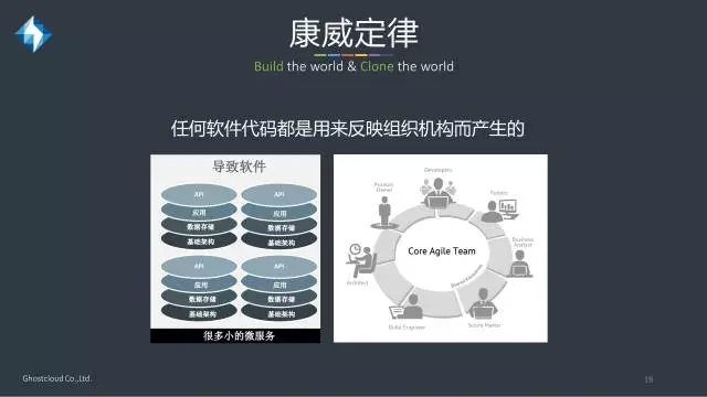 在开发微服务中康威定律起到了很大的作用。康威定律指出任何软件代码都是用来反映组织机构而产生的,如果要采用微服务的开发方法,就需要是把团队划分成多个小团队,由每个小团队负责一个或多个微服务。所以如果要转成DevOps和CI/CD的开发模式,就需要采用这种敏捷开发模式,一个团队7-8个人比较合适。