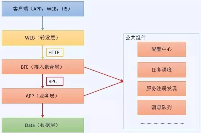 包含配置中心,任务调度中心,服务注册发现中心,消息队列等(这4个公共组件和灰度发布有一定关系,后续会单独介绍)。