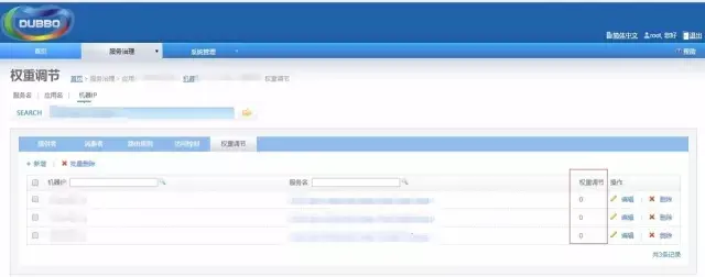 权重调节,可以设置0-100的权重,设置为0时即不提供服务。