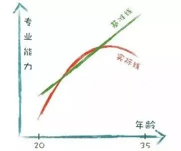 实际线就没那么乐观了。刚入职场的年轻群体就像那全干的海绵,吸水能力极强,没有意外的话30岁左右可以成长为核心骨干甚至管理层。这也意味着天花板、瓶颈期或者说舒适区的随之而来,一招不慎就会以一个极其隐晦的幅度从高点缓缓滑落。