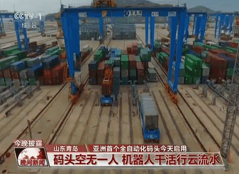 例一:打开电视,看到了亚洲首个全自动化码头在青岛落地。
