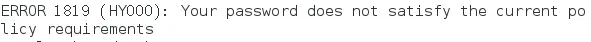 原因是因为MySQL有密码设置的规范,具体是与validate_password_policy的值有关: