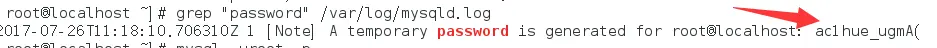 [root@localhost ~]# grep "password" /var/log/mysqld.log