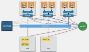 我们的网络方案主要是基于Onos+OVS的SDN网络方案,每个容器都有一个区别于机房实体机的Overlay IP,容器与容器之间实现“大二层”互通,与机房网络之间通过交换机打通。物理机可以直接通过容器Overlay IP访问容器,反之亦然。