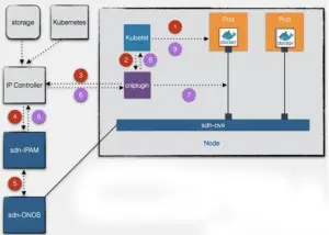 Step4:IP Controller会判断该容器属于哪一个子网,子网中是否有可用的IP,及是否有绑定的IP地址等,在根据计算出的IP地址及子网信息等,去SDN IPAM端申请虚拟Port(Overlay IP);