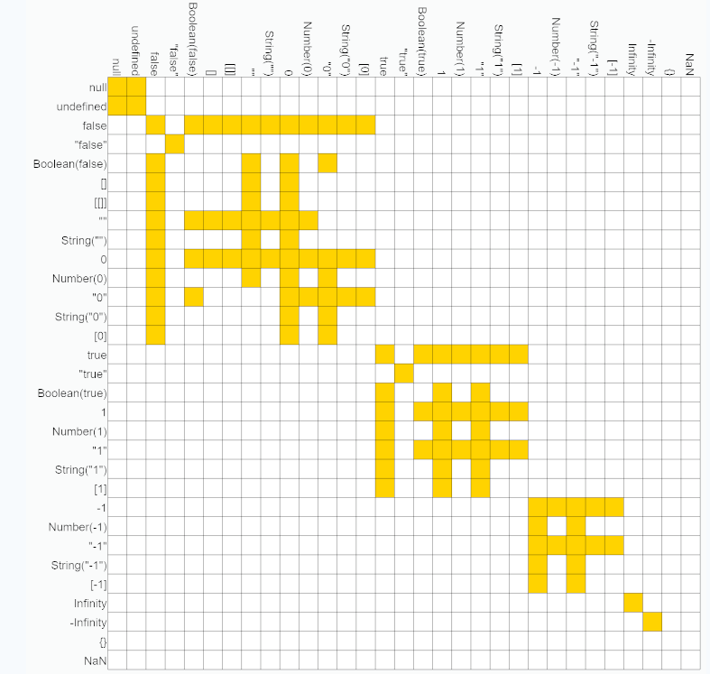 看了很多其他的博客,都有说到“==”会做类型转换,比较其值,我觉得这个答案依然无法详细解释上述代码的结果。