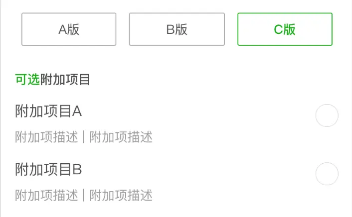 因为tab与附加项内容有联动,所以我将附加项直接与tab内联,切换tab的时候直接切换相应的附加项数据即可。